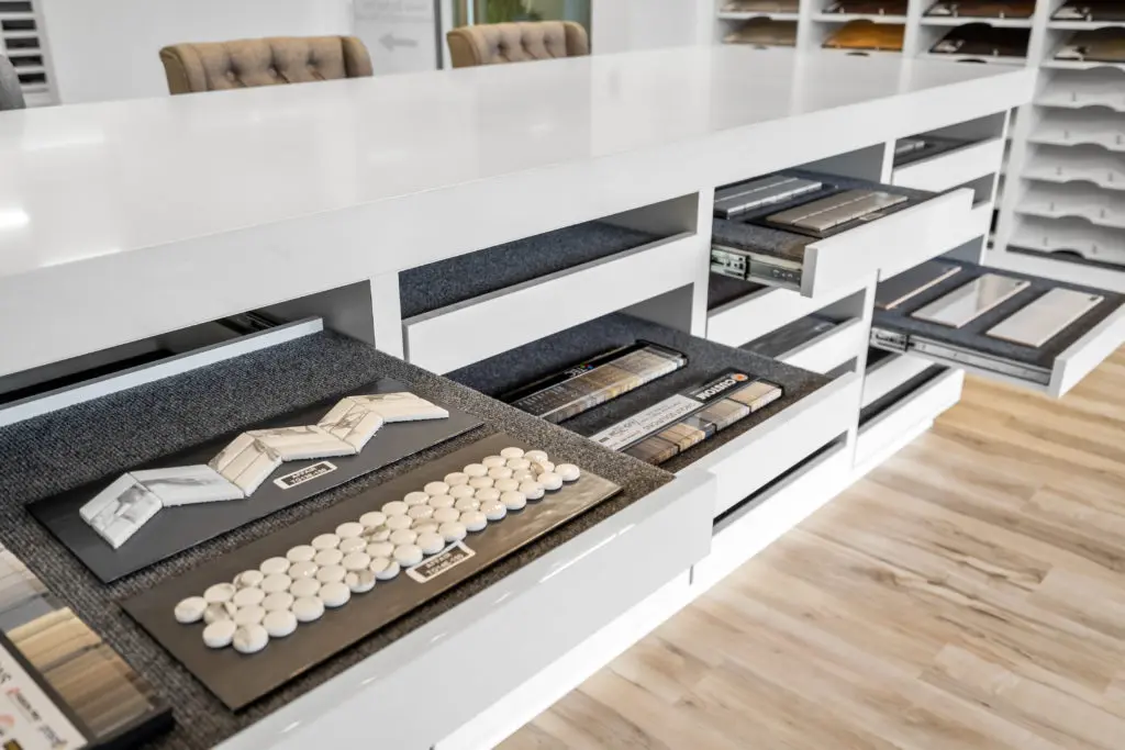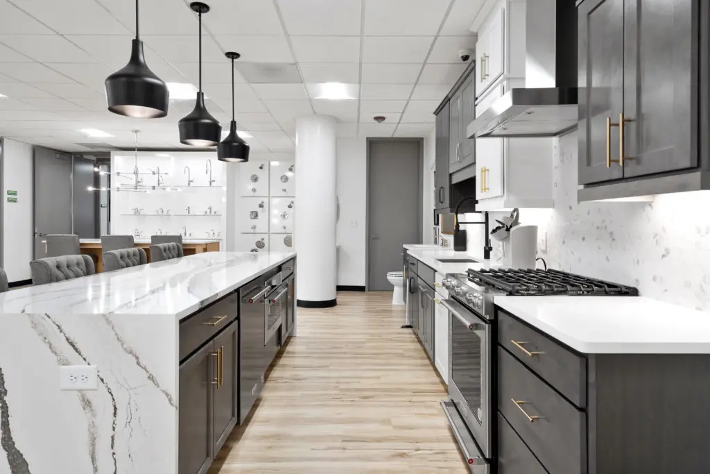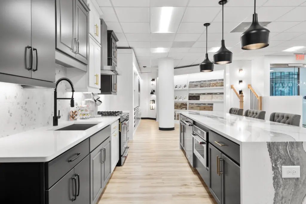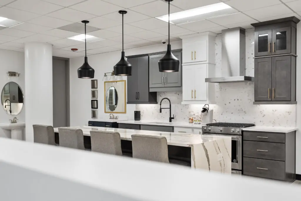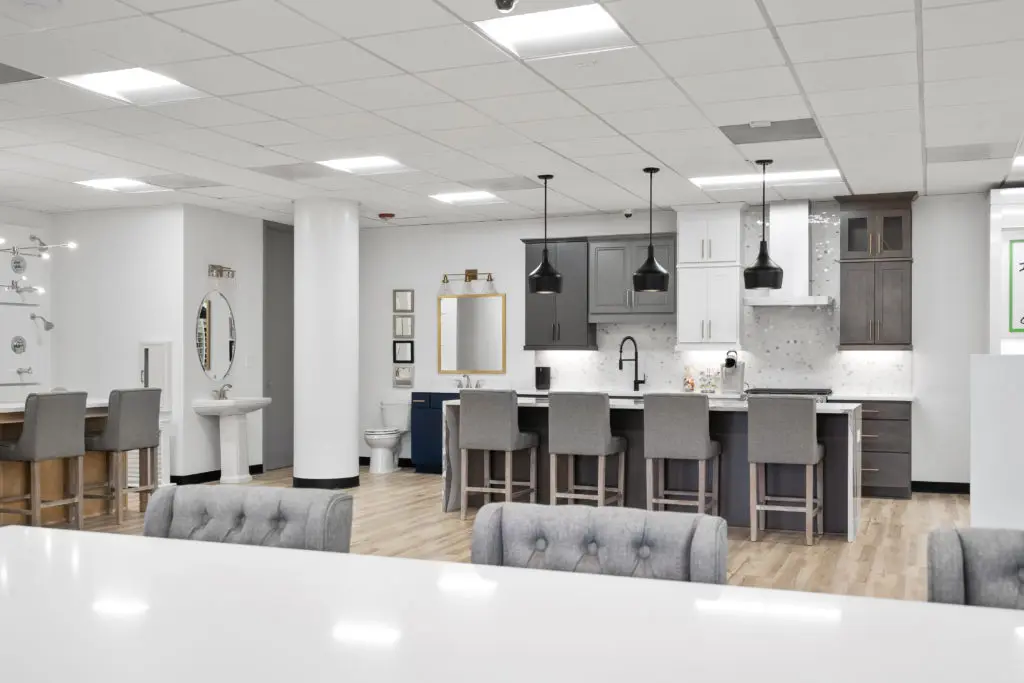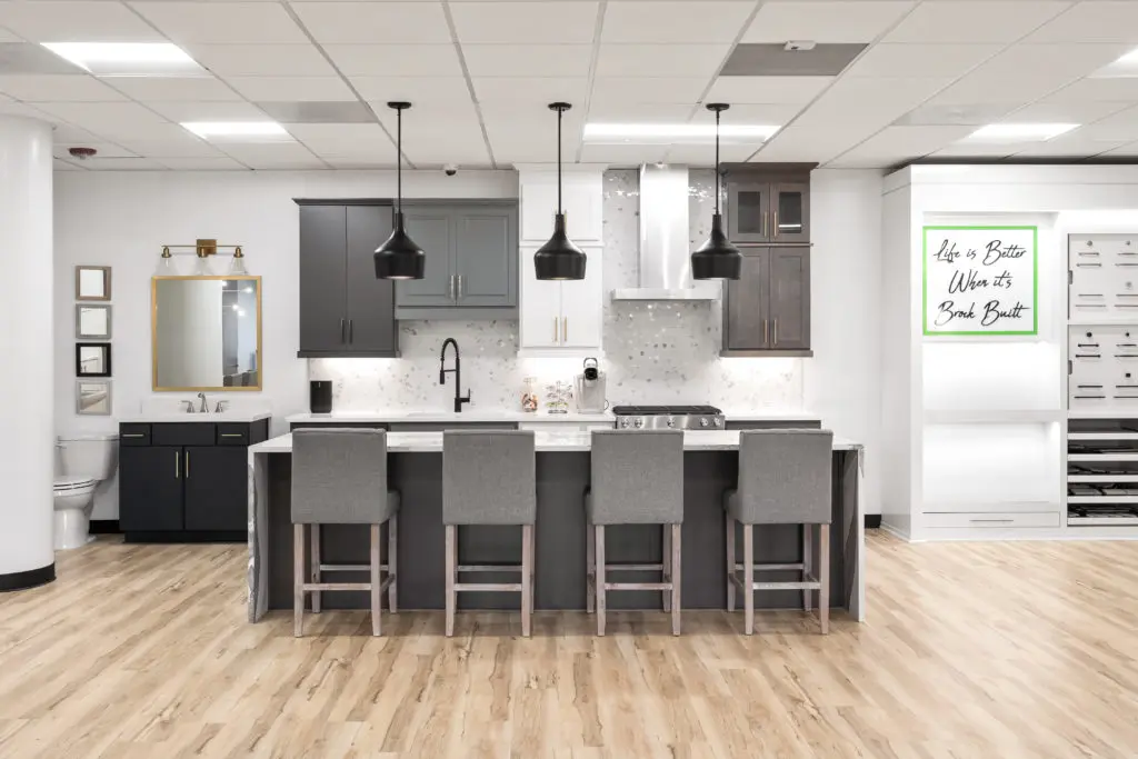 Wander through our showroom of design styles for flooring, cabinetry, light fixtures, countertops, and more! Add catalog or design options when your consultant reaches out via email.